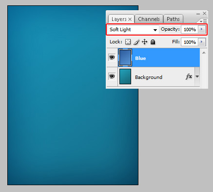 Set the "Blue" layer's Blend Mode to Soft Light to achieve a more vivid and interesting background color.