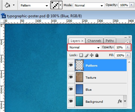 Then, reduce the "Pattern" layer's Opacity to 10%.