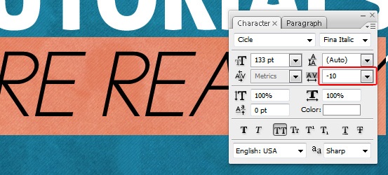 Change the font to Cicle (Fina Italic) at 134pt size and write "ARE REALLY", then set the Tracking to -10 and place it 30px below the word "TUTORIALS".