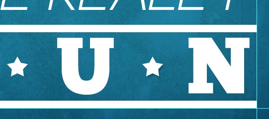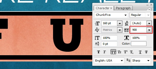 Choose ChunkFive font at 160pt size and write "FUN", then set the Tracking to 900 and place it about 12px above the underline at the bottom.