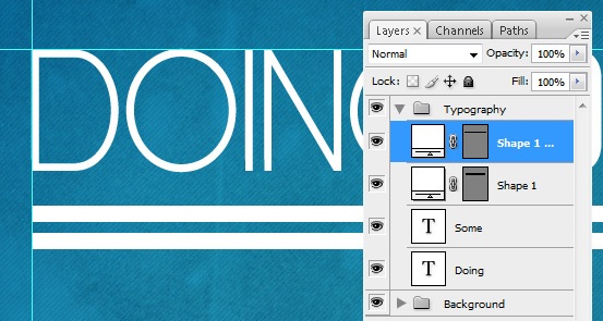 Grab the Rectangle Tool (U) and draw a rectangle at 15px height below our text; use our vertical guides as a reference for the width of the rectangle. Place it about 30px below our text. This rectangle serves as an underline on our text.